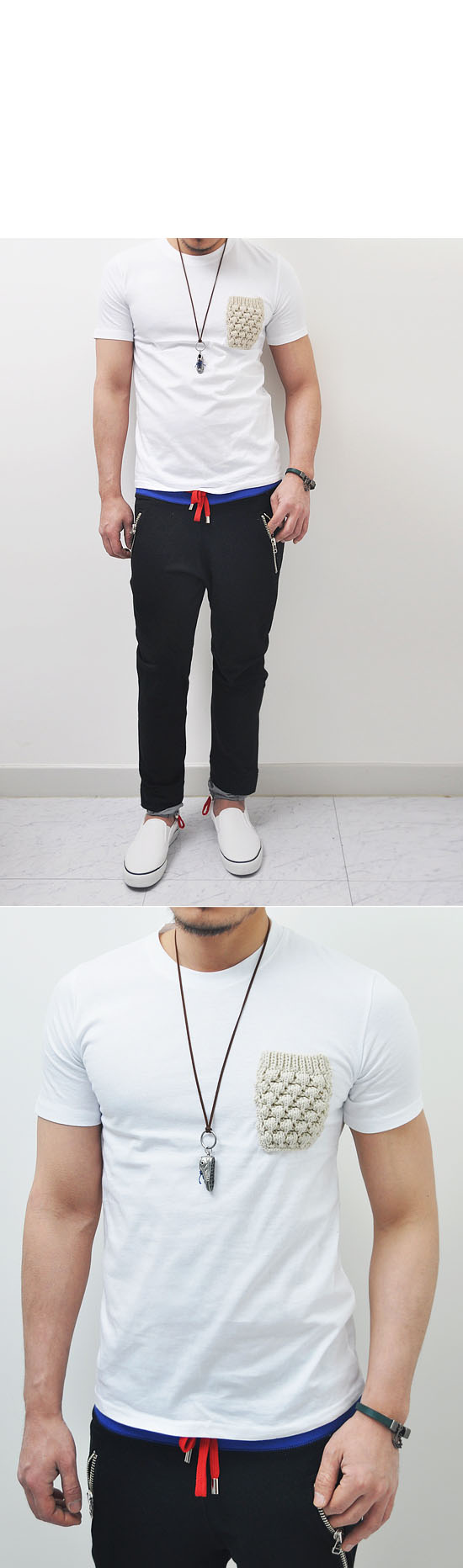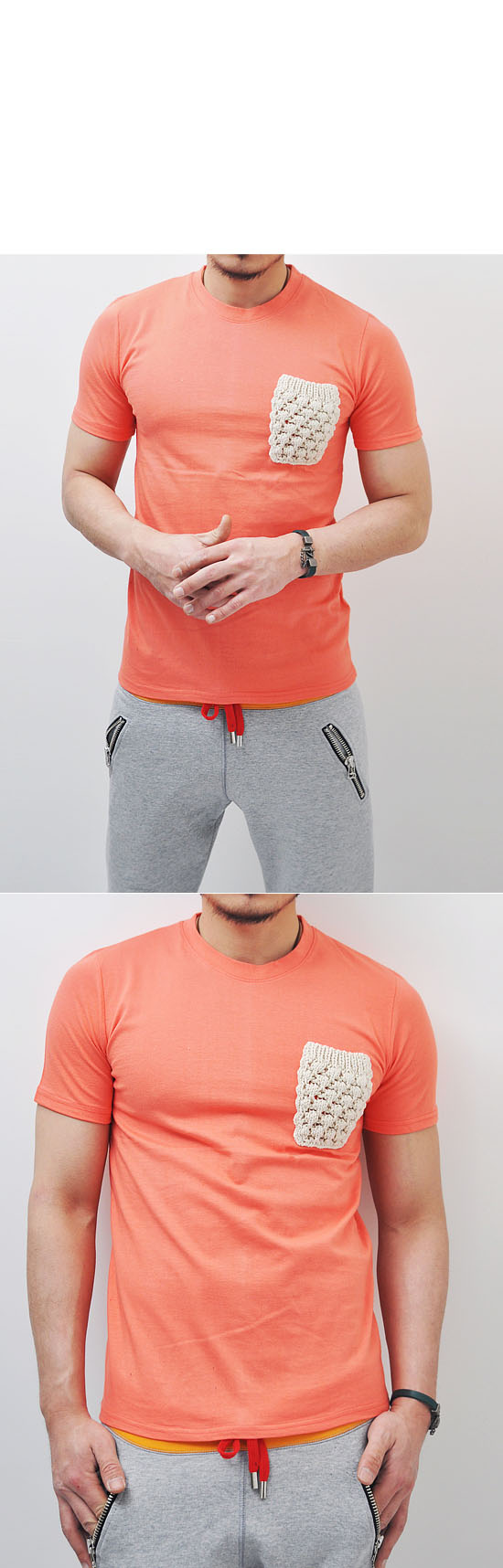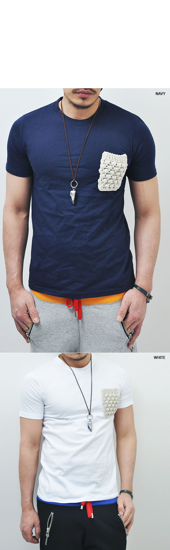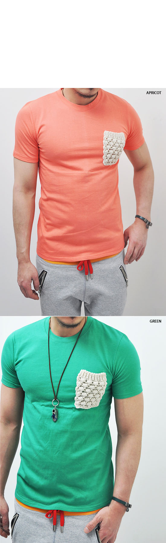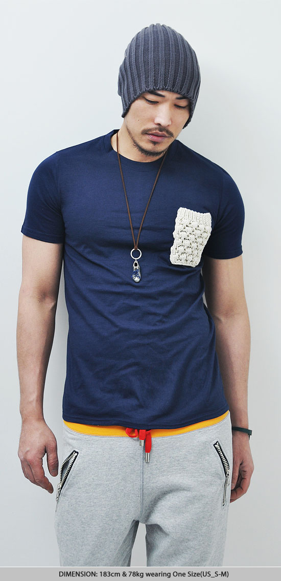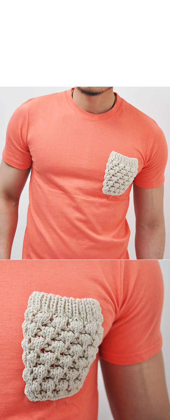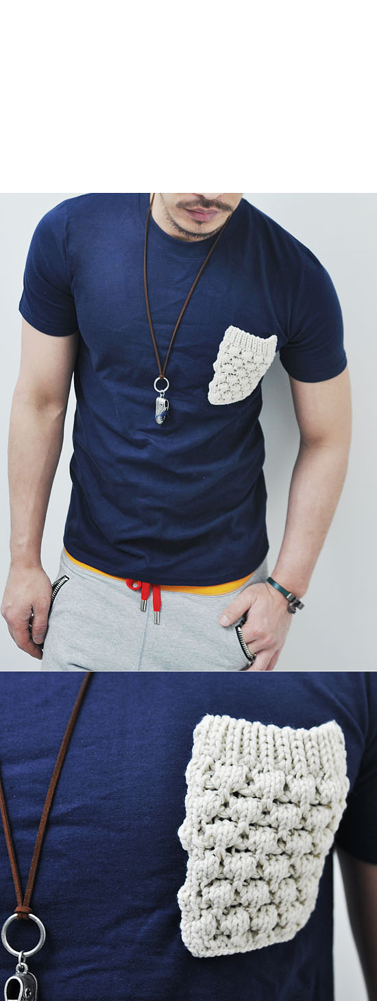 UBER-COOL HAND-MADE KNIT MENS POCKET CREW TEE-TEE 25 BY GUYLOOK