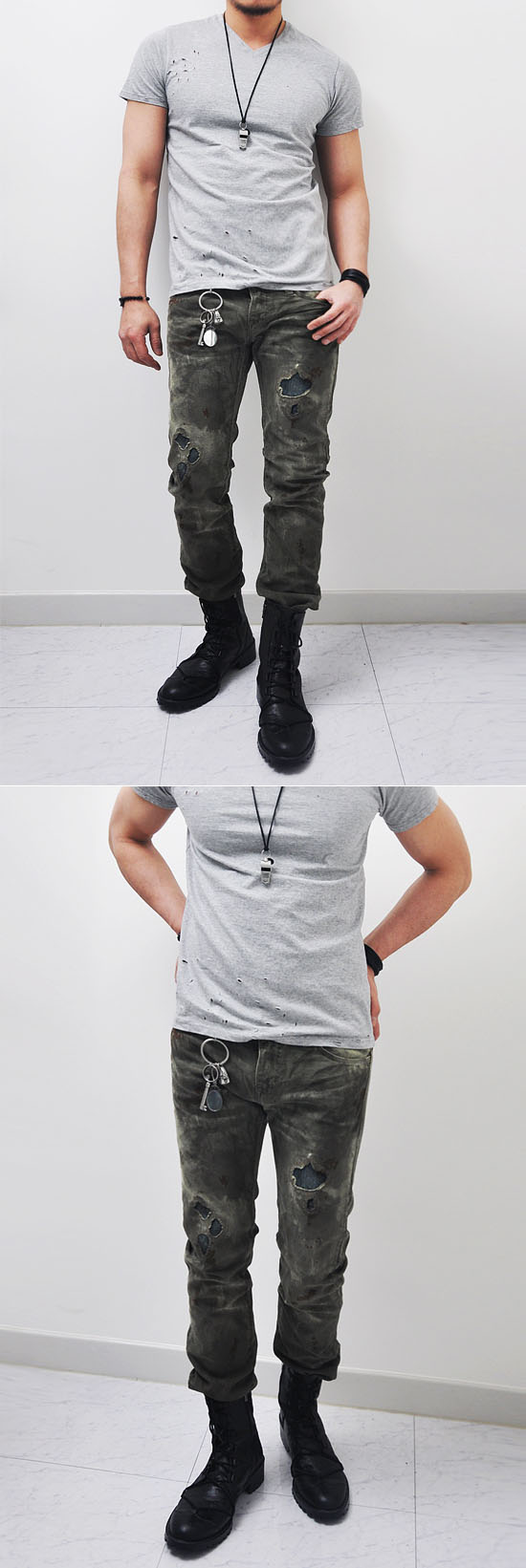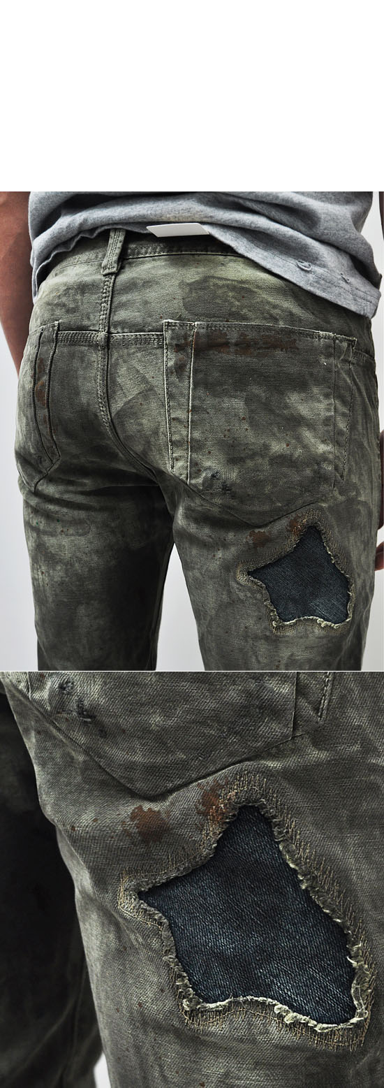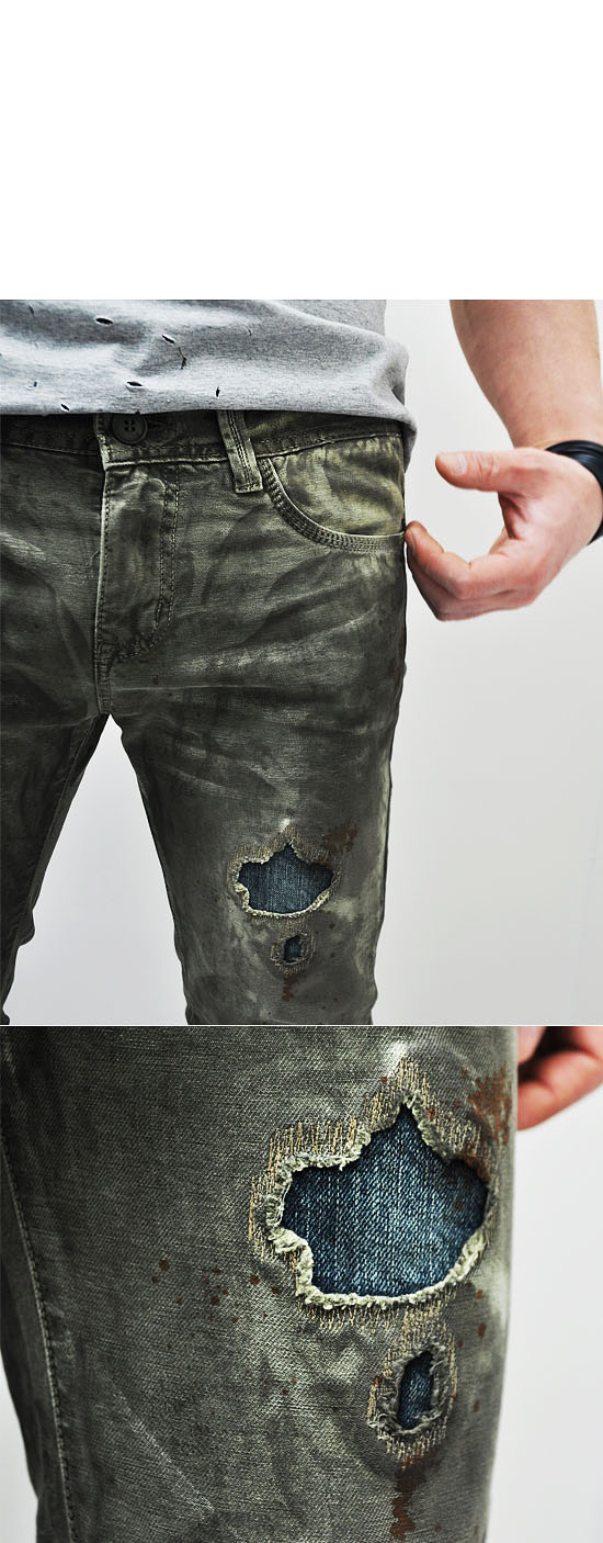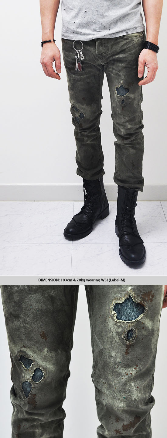 - Constructed from distressed army green washed denim fabric