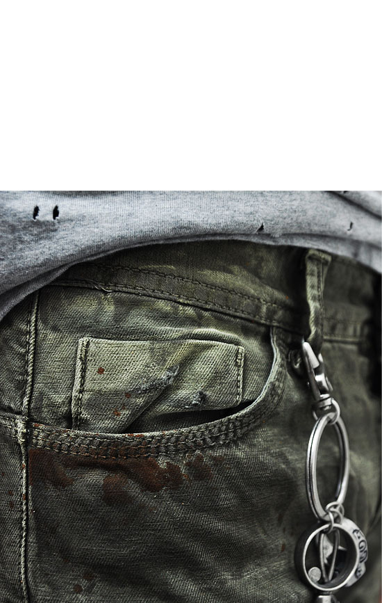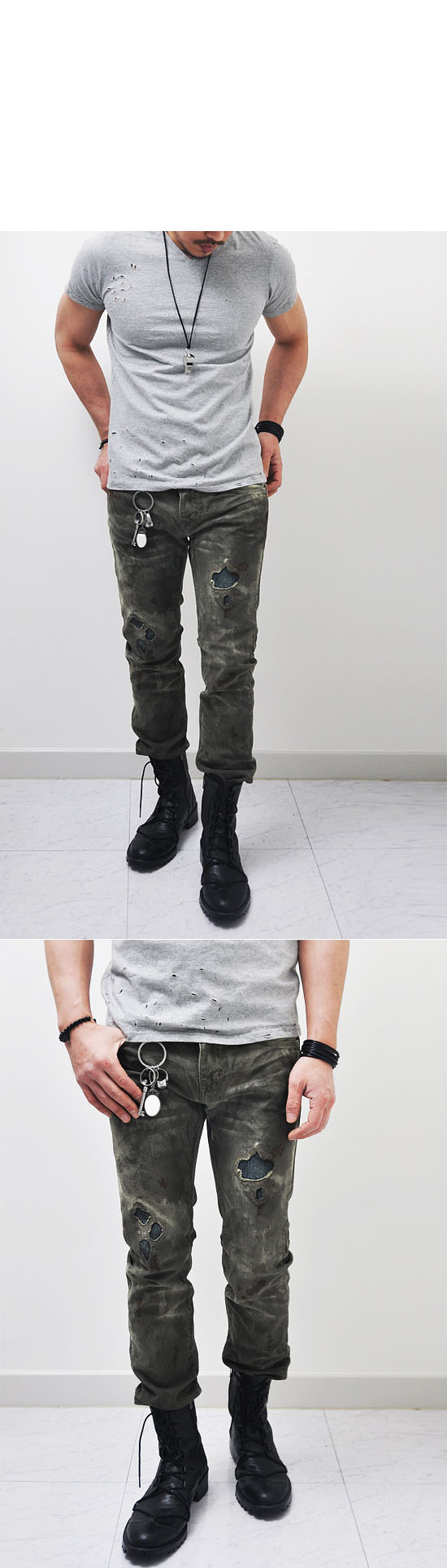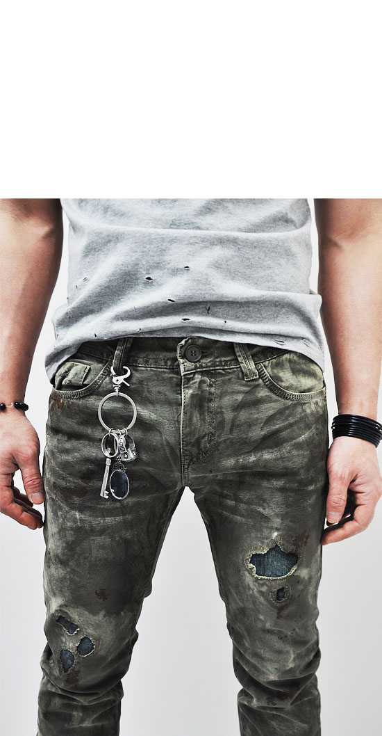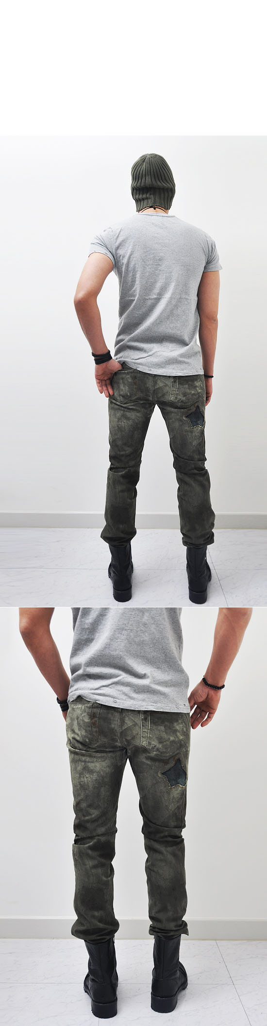 - Constructed from distressed army green washed denim fabric